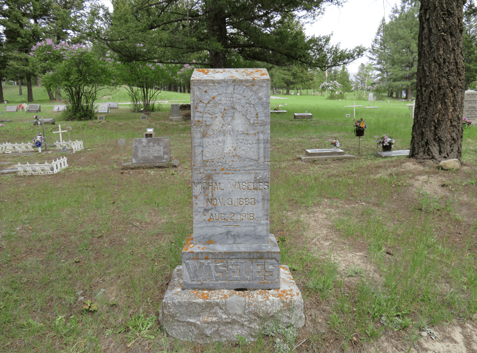 There’s a large, expensive tombstone in Fortine Cemetery, dating back to 1918.  The name, Waseles is one of the names the man lived under – but to his contemporaries in Trego and Eureka, he was Mike Smith.
