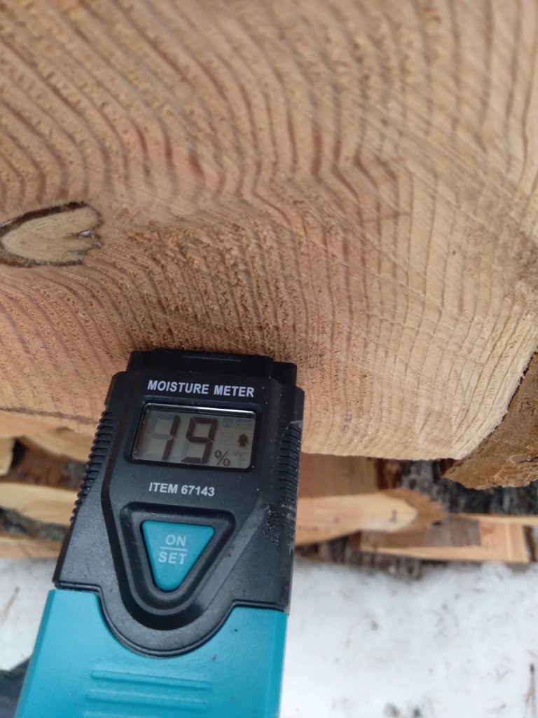 Now the half-dozen blocks that I’ve moved inside the house might as well have done their time in a dry kiln – my harbor freight moisture meter checks them out at 5 or 6% moisture.