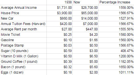 The table below came from the article linked and cited above, and was written in 2015. You can look at the prices you see today – like coffee and gasoline – and extrapolate the recent years for yourself.