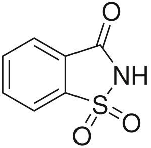 The chemical names for saccharin are sufficiently arcane to the non-chemist, that use of the common names such as benzosulfimide is preferable to the IUPAC name. It possesses a benzene ring, which is a six carbon ring of alternating single and double bonds, as well as a second, rather more interesting ring.