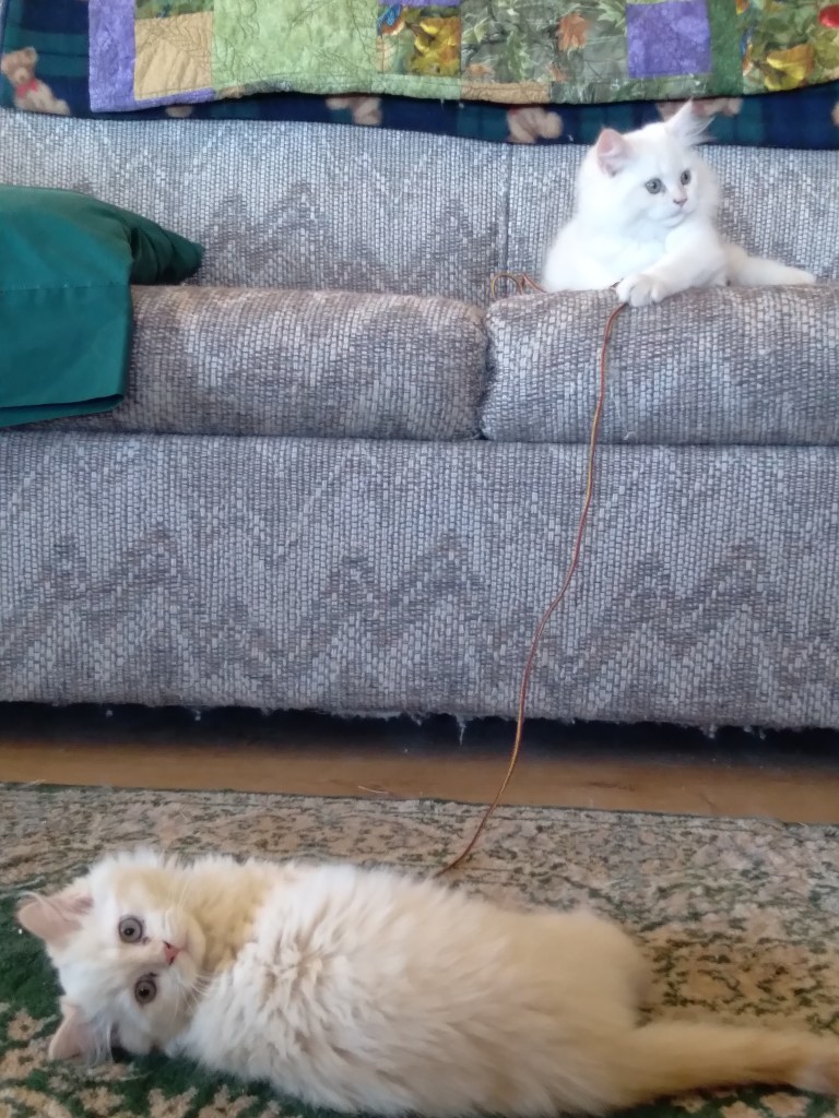 So we’ve been 8 years without housecats . . . and for a change, we’re starting with two kittens. After the first week, I’m hypothesizing that 2 kittens can create four times as much chaos as one kitten can – I’ve never had two kittens indoors simultaneously. My experience is with a single kitten and a grumpy adult cat – it’s a new world for this old man. And I kind of like it.