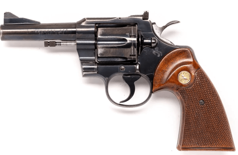 The serial number tells me that my Colt Trooper left the factory in 1954. When I got it, the grips were from the 1960’s, with gold medallions – so I didn’t see anything wrong with taking them off and replacing them with a set of Pachmayr grips. A lot of parts get changed on Colt revolvers – and the value is no different with my chosen grips than someone else’s replacements. It probably looked like this when it left the factory: