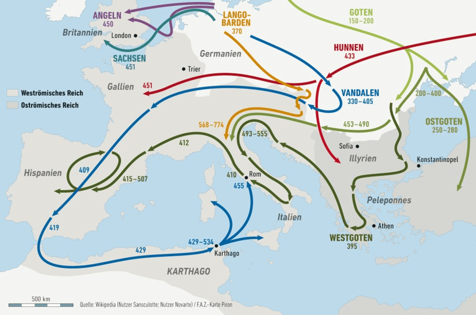 The original Volkswanderung occurred as the Roman Empire went into full decline – I can’t say if there was a causal relationship or not. Still, historians tend to give a lot of credit to Rome losing battles with the barbarians – 8 Reasons Why Rome Fell | HISTORY :