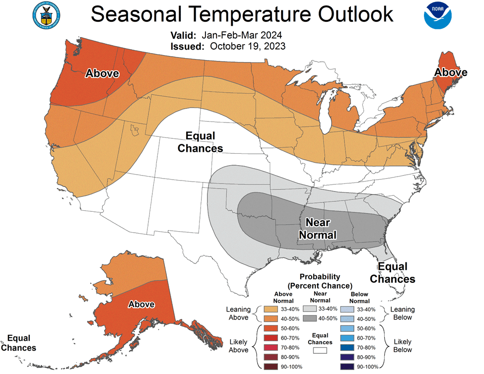 NOAA predictions for the coming winter are one of those good news and bad news type of things – the good news is that the Climate Prediction Center is projecting less precipitation and warmer temperatures for the upcoming winter. The bad news is the same: