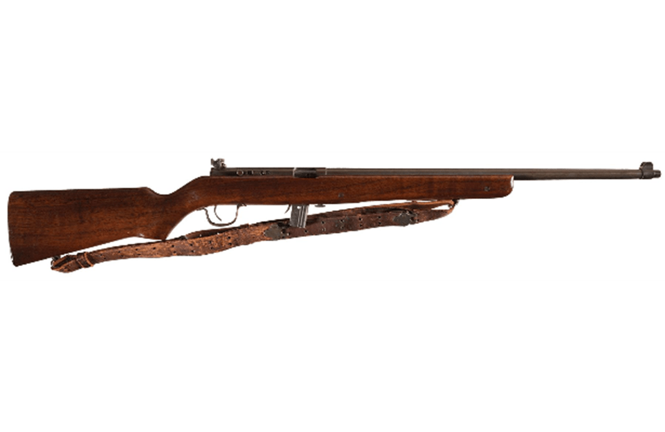The Reising below showed up on a Rock Island Auction website in their catalog #69. They expected it to sell for $900 to $1,400. It brought $2,588. I’m not sure why the market has raised the value of the M65 so much – scarcity on one hand, and a rear sight that can be adjusted so that the 22 can hit the target at 500 yards are two drivers that I can see – but the big one seems to be that the folks who own M50 submachine guns want one of the 22 training rifles to accompany that collectible into the gun safe. (They made over 100,000 of the submachine guns.)