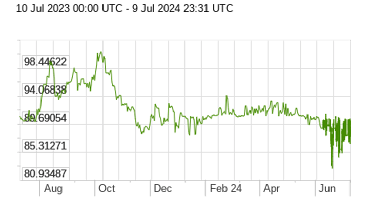 US Dollar against the Russian Ruble