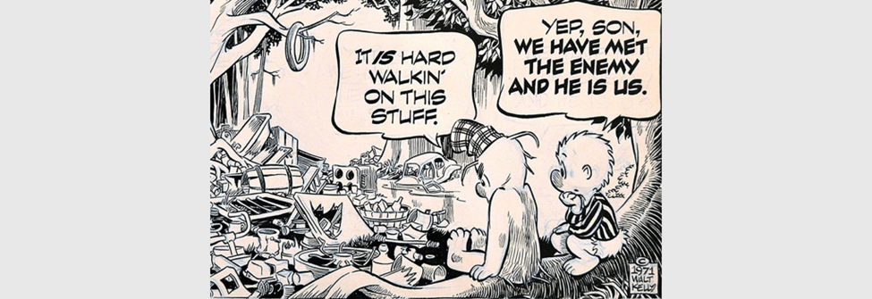 Pogo said it first: “We have met the enemy and he is us.” Nine words. Eight of them with only one syllable. The panel above showed up on the first Earth Day.
