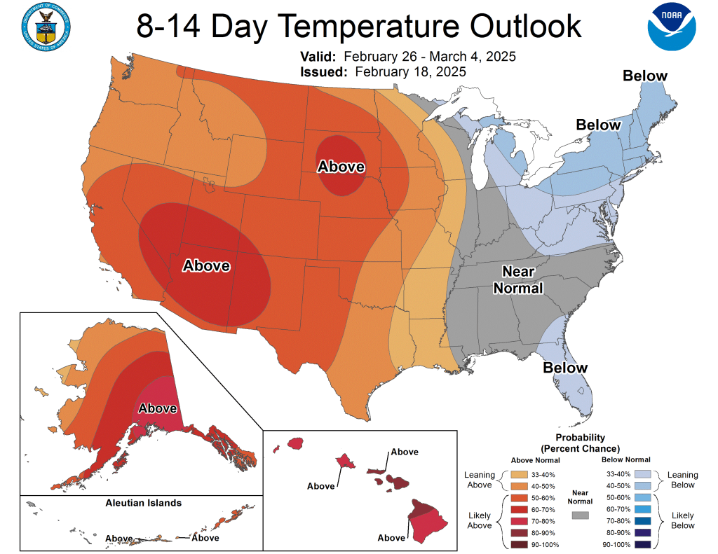 After a few days of that, we can anticipate water, water everywhere, as even night temperatures start to remain above freezing. For the forecast- visit weather.gov which is predicting above average temperatures for the next two weeks, accompanied by above average precipitation for most of the state.
