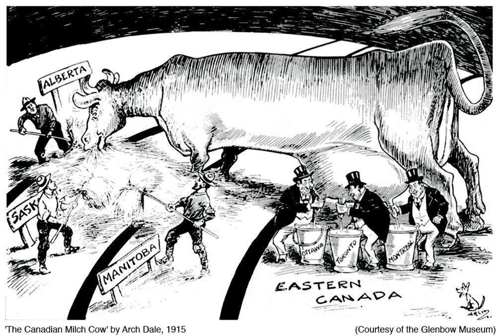 This cartoon came from the Canadian Blog Small Dead Animals – with a 1915 date, I’m fairly sure it’s in the public domain. It does suggest that the idea that Alberta is being ripped off by Quebec and Ontario isn’t a particularly new one.