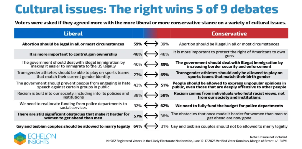 I can’t say that Echelon Insights has all the answers – or even any answers. On the other hand, I do like a way of looking at American politics that goes beyond the simple two party classifications – I really don’t feel alone disliking both major parties. There’s a lot more on the Echelon Insights website, and I encourage folks to look beyond the teasers I’ve presented.