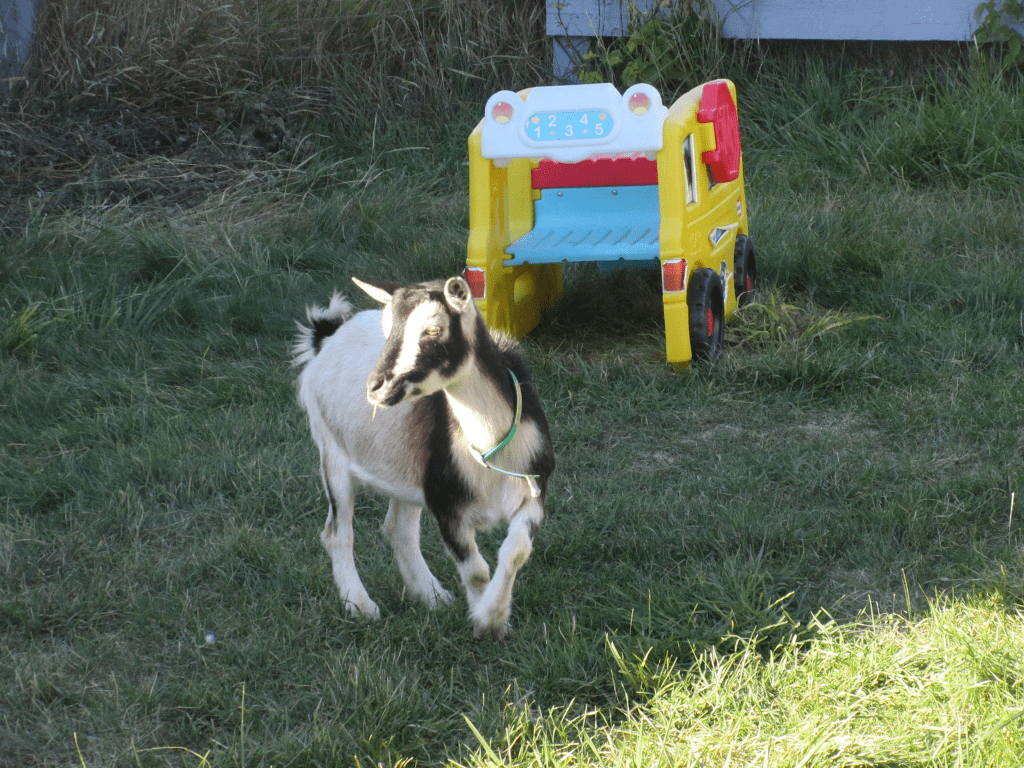 My grandson, Remi, gave me his first complete sentence about six weeks ago. “I need a goat.” I thought back over 65 years – and realized that, just before Dad retired from the Navy, my parents bought their first house – in Washington – then bought an additional acre of blackberry brambles, and goats to eat down the brambles. I realized that I had liked having goats around as a kid – so I messaged a great lady I met who had goats.