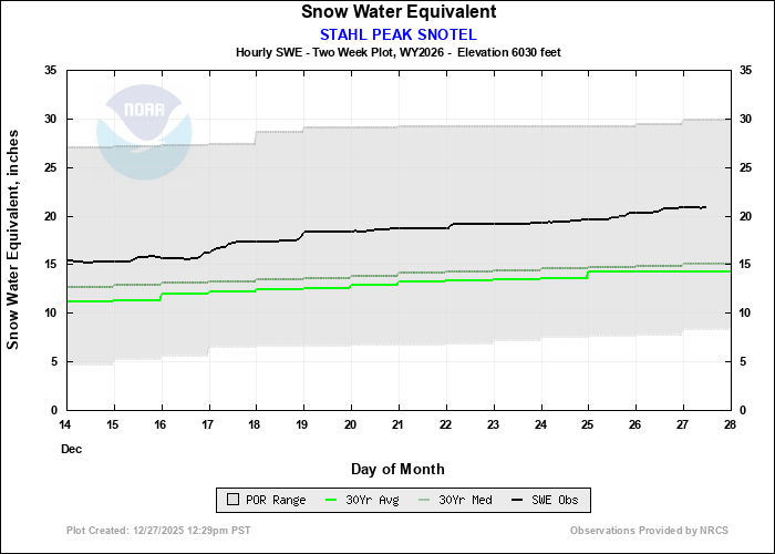 | Daily Statistics Latest Observation is 20.90 inches which is 147 % of average Note: The Median/Average is based upon the 30 year period 1991 to 2020. The Min/Max is based upon the Period Of Record (POR). | ||||
