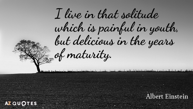 Many have described solitude, being alone, far better than I can. As we age, there are many things that make solitude more acceptable, more appealing. Einstein – as with many other topics – phrased it well, but did not explain it: