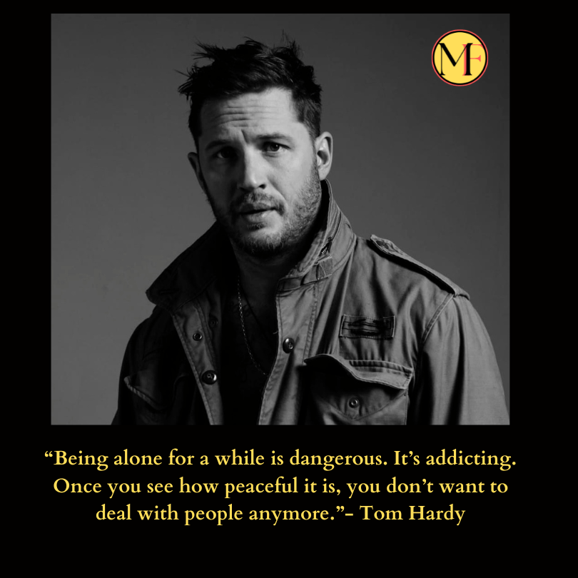 Health, for me, motivated the alone – the cancer and subsequent bowel resection left me with a brittle balancing of meals and immodium for times when I want to be in public. Since that means fewer times out, I have learned to enjoy solitude. Perhaps Tom Hardy phrased it best for me: