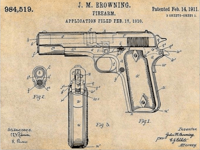 Still, there are other reasons to notice the 14th. Instead of stressing Valentines, let me share a copy of the patent document for the Model 1911: