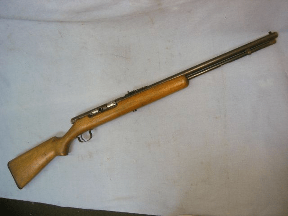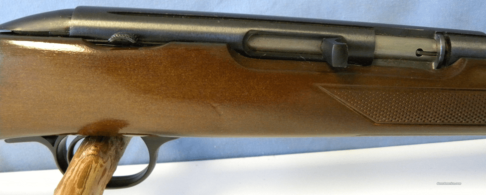 So for years, I have been hunting that firing pin. I finally found a used one – so it looks like I’ll be fixing Dad’s last broken gun. It’s from the “good old days” – the “golden age” of 22 rifles. A time when even the small mass merchandisers had their own names stamped on rifles. The stamp plainly identifies Savage as the maker of this “Hiawatha 587.” I think that Western Auto marketed them as Revelation. This is one of the “gill rifles” – named because of the cutouts on the receiver. (This photo is of the model 87, which I ruled out because the Hiawatha has only one gill on each side)