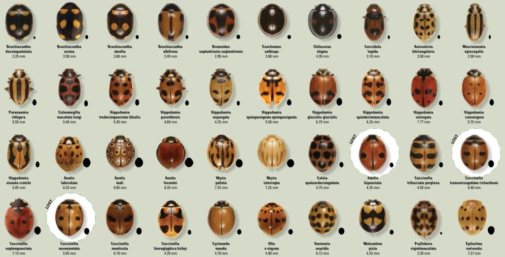 This past autumn I saw just over a dozen species of ladybeetles around our place… and I wasn’t searching for them. For comparison, South Dakota is currently known to have 80 species of ladybeetles. Chances are good that Montana has a similar or higher number. Despite all the ladybeetle species we had outdoors this summer, the only species I’ve seen in our home this winter is the Multicolored Asian Ladybeetle.
